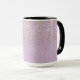 Kleine goldene Sterne auf Lila-Lavendel-Hintergrund auf dieser White-Kaffee-Tasse. Tasse weiß. Schwarzes Interieur, Schwarzer Handle. Passen Sie weiter an oder kaufen Sie wie gezeigt.