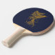 ein goldfarbenes, dekoratives Liniendesign eines Phönix-Vogels, der auf einem roten und blauen Tischtennispaddel startet