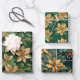 Golden Poinsettia Blume über grüne Weihnachten Geschenkpapier Set