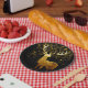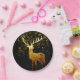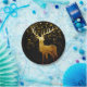 Schöne und festliche Urlaubspapiere Party Teller mit polygon geometrischen goldenen Hirschen mit goldenem Stern & Schnee Hintergrund auf schwarzem Hintergrund