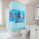 Eine schöne goldene Meerjungfrau schwimmt mit einer Schule aus schwarzem Butterflyfish über einem farbenfrohen Riff.