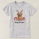 "This beautiful illustration features a detailed portrait of a handsome Golden Retriever with its characteristic flowing golden coat and gentle, intelligent eyes. The dog is given a festive holiday touch with reindeer antlers adorned with small golden and blue/green ornaments. Two beautifully wrapped Christmas presents with red ribbons sit prominently on either side. This high-quality graphic is ideal for personalized holiday gifts for Golden Retriever owners, Christmas cards, apparel, ornaments, or any product celebrating this friendly and devoted dog breed."