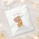 Diese Gastgeschenk-Taschen sind mit einem hübschen Aquarellbild eines Golden Retriever mit einem Strauß rosa Blume versehen