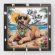 Golden Retriever Beach Life Quadratische Wanduhr