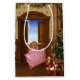 Golden Retriever beendet Weihnachts-Shopping Mittlere Geschenktüte
