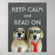 Dieses Schulposter enthält ein Paar goldener Retriever-Hunde, die als "Nerds" verkleidet sind und vor einem Kreidebrett stehend sind, zusammen mit dem Satz "Calm Behalt und Read On". Perfekt für den Klassenraum!