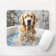 Golden Retriever in einer Badewanne mit Seifenblasen