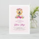 Golden Retriever Blumendusche Brunch Einladung | Laden Sie Ihre Familie und Freunde mit dieser individuellen Blumeneinladung in Ihre Babydusche ein. Es zeigt Aquarellbilder eines niedlichen Goldenen Retriever mit rosa, orangefarbenen und violetten Blumen. Matching Artikel und andere Hunde sind verfügbar.