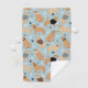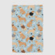 Niedliche Golden Retriever Hunde mit dunklen und hellen Mänteln sitzen und stehen mit verstreuten Hundeknochen und Pfosten auf blauem Hintergrund.