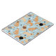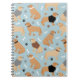 Niedliche Golden Retriever Hunde mit dunklen und hellen Mänteln sitzen und stehen mit verstreuten Hundeknochen und Pfosten auf blauem Hintergrund.
