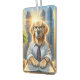 Ein anthropomorphisierter Goldene Retriever, der hinter einem Büroschreibtisch sitzt, als wäre er ein berufliches Unternehmen, mit Shirt, Krawatte, Brille und Armbanduhr