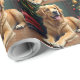 A nostalgic and tender Christmas painting of a Golden Retriever watching a toy train beneath the Christmas tree. A timeless holiday artwork that brings warmth and joy to any home.