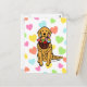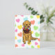 Sweet und niedlich Golden Retriever Cartoon Design für Hundefreunde, die GR Hunde Liebe. Ein unschuldiger Golden Retriever hält einen kleinen Korb mit bunten Herzen. Erstellt von Naomi Ochiai aus Japan. Sie können Text nach Belieben anpassen. Entfernen Sie den Beispieltext, und fügen Sie Ihren Text ein. Farbenfrohe Herzen Muster in hellen Ton.