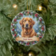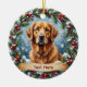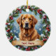 A beautiful, ultra-detailed Christmas ornament design featuring a realistic portrait of the breed centered within a soft, festive winter frame. This elegant design includes pine branches, red berries, and snowflakes against a snowy backdrop, illuminated by warm holiday lighting. The balanced, round composition includes clear space below the dog for customization.