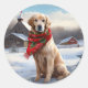 Golden Retriever Dog in Schnee Weihnachten Runder Aufkleber