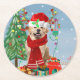 Golden Retriever Dog in Snow mit Weihnachtsgeschen Runder Pappuntersetzer