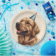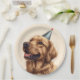Niedliche Cartoon-Illustration des Golden Retriever Hundes mit einem Geburtstagshut. Ideal für Liebhaber von Haustieren oder Hundeeltern.