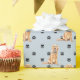 Ein Bild eines Golden Retriever Hundes ist die Eigenschaft in diesem jeder Anlass Geschenkpapier. Der Hund trägt eine blaue Bogen-Krawatte inmitten eines schwarzen Pfotenmusters und wird auf einem silbergrauen Hintergrund wiederholt.