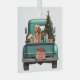 Ein aquamariner, blauer Retro-Lieferwagen-LKW trägt einen verzierten Holiday-Baum und Geschenkpakete auf diesem niedlichen Weihnachtsschmuck aus Glas. Von der Hecktür aus sieht man einen schönen Golden Retriever Hund. Ein rustikales Holzschild auf der hinteren Stoßstange sagt "Weihnachtsmann".