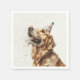 Niedliche Cartoon-Illustration des Golden Retriever Hundes mit einem Geburtstagshut. Ideal für Liebhaber von Haustieren oder Hundeeltern.