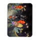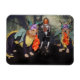 Dieser Magnet zeichnet sich durch goldene Retrievers aus, die als Feueratmungsdrachen verkleidet sind und einen Ritter bekämpfen.