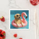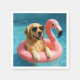 Golden Retriever Floating On a Flamingo Pool Toy Serviette