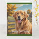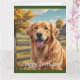 Auf dieser Geburtstagskarte finden Sie einen goldenen Retriever im Land.