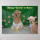 Dieses Poster enthält ein goldenes Retriever-Mädchen mit einem kleinen goldenen Lamm. Die Nachricht lautet: "Happy Oaster to Ewe!"