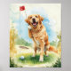 Golden Retriever Golf Watercolor Poster - Cute Dog Sports Wall Art Print