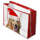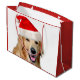 Schöner Goldener Retriever in einer Weihnachtsmannmütze.