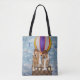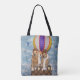 Diese Taschentasche kennzeichnet die goldenen Retriever, die als Heißluftballonpiloten gekleidet werden, die durch den Himmel auf ihrem Heißluftballon fliegen.