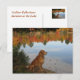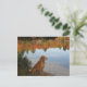Der Golden Retriever Hund blickt in der Herbstsaison auf den See. Herbstlaube werden im Wasser reflektiert.