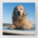 Golden retriever-Hund, der auf ein Paddel-Brett Quadratische Wanduhr