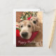 Senden Sie in dieser Saison mit dieser niedlichen Weihnachtspostkarte besondere Urlaubssegmente! Das Design zeigt ein Foto zweier goldener Retriever Hunde, die auf einem roten Kissen unter einem dekorierten Baum liegen. Könnten sie für den Weihnachtsmann gewartet werden? Anpassbarer Text auf der Vorderseite lautet: "Happy Holidays!", während im Hintergrund der Text Staaten: "Wir wünschen dir das Beste, diese Weihnachtszeit & immer."