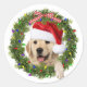 Golden Retriever im Kranz mit Weihnachtshut Runder Aufkleber