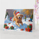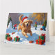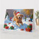 Golden Retriever im Schnee mit Weihnachtshut Karte