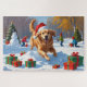 Golden Retriever im Schnee mit Weihnachtshut Puzzle