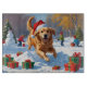 Ein fröhlicher Golden Retriever durchläuft die schneebedeckte Winterszene und trägt einen festlichen roten Weihnachtshut. Dieses fröhliche Design vereint die freundliche Natur, Loyalität und den spielerischen Geist der Rasse und feiert gleichzeitig die Wärme und Magie der Feriensaison. Ein herzlicher Winterurlaub voller festlichen Charme.