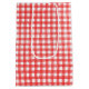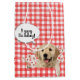 Niedlicher Goldener Retriever mit weißen Gänsebläschen auf weißem und rot verblasstem Gingham-Hintergrund zum Geburtstag oder zu anderen Veranstaltungen. Text kann bearbeitet werden.