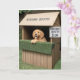 Ein Golden Retriever sitzt in einem Karton-Kissingstand mit einem Schild, das "KISSING BOOTH $1.00" zum Geburtstag sagt. Der Text ist bearbeitbar.