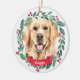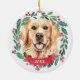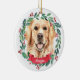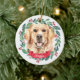 Dekorieren Sie Ihren Baum oder geben Sie ein besonderes Geschenk in dieser Urlaubssaison mit diesem eleganten Merry Christmas golden Retriever in einem Kranz-Design Weihnachtsschmuck und passende Dekoration. Dieser goldene Retrivenschmuck mit einem Aquarellhund in einem grünen und roten Kranz mit Heiligen und Beeren. Personalisieren Sie mit dem Namen vorne, Jahr zurück. Dieses goldene Retriever-Ornament wird unter Golden Retriever Liebhabern, Hundefreunden und Tierliebhabern beliebt sein. Besuchen Sie unsere Kollektion für passende Weihnachtskarten, Wohngestaltung und Geschenke. COPYRIGHT © 2020 Judy Burrows, Black Dog Art - Alle Rechte vorbehalten. Golden Retriever Eleganter Hund Frohe Weihnachtskarte
