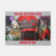 Diese Türmatte ist mit einem goldenen Retriever als Ritter in Rüstung ausgestattet, der ein Schwert hält. Er hat ein Pferd und sitzt neben dem Schloss. Der Text lautet: "Sie sind hier willkommen. Ritter oder Tag."