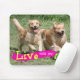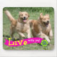Dieses mousepad kennzeichnet eine Fotografie von zwei golden retrieverhunden, die glücklich durch ein grünes Feld laufen. Titel liest, "leben mit Freude!"