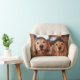 Dieses Kissen kennzeichnet eine Fotografie von zwei lächelnden golden retrieverhunden, die Baseballmützen tragen.
