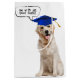 Golden Retriever mit einem blauen Graduierungsdeckel und Goldtassel. Die Hintergrundfarbe kann geändert werden. Text ist bearbeitbar.