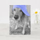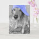 Nah von goldenem Retriever mit lila Hut, um bald wieder gesund zu werden. Text ist bearbeitbar.