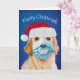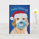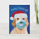Golden Retriever mit Facemask Merry Christmask Karte