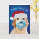 Es ist schwer, während einer Pandemie zu lächeln (besonders wenn man eine Maske trägt), aber dieser Golden Retriever sollte ein Lächeln auf das Gesicht legen. Sie trägt eine Gesichtsmaske mit einem großen Lächeln darauf und ihrer Weihnachtsmannmütze und wünscht Ihnen eine "Fröhliche Christmaske". Und während die Dinge jetzt "RUFF" sind, sind zumindest die meisten von uns noch gesund. Eine lustige Urlaubskarte während der Pandemie für jeden Hundefreund.