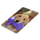Dieser Magnet verfügt über einen niedlichen Golden Retriever Hund, der einen Hut zum Geburtstag trägt und ein lila Spielzeug in seinem Mund trägt.