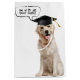 Goldener Retriever mit schwarzer Graduierungskappe und Goldtassel. Die Hintergrundfarbe kann geändert werden. Text ist bearbeitbar.